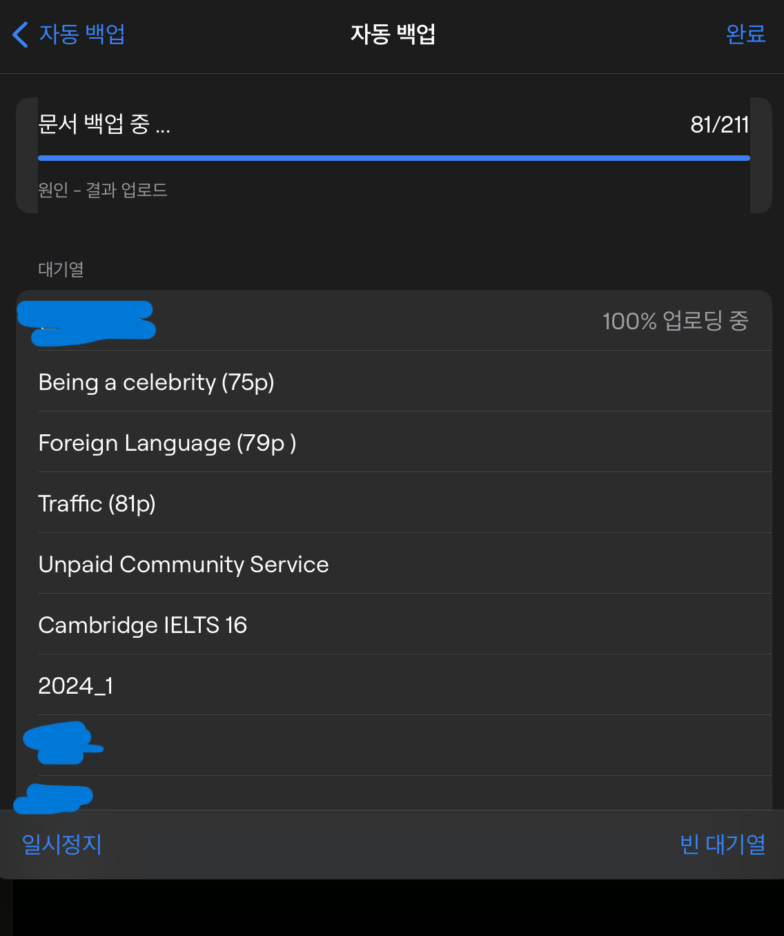 "자동 백업" 이 꺼져있을 거임 (캡쳐 화면에서 활성화인 건 설정 다 해놔서 그런것임)